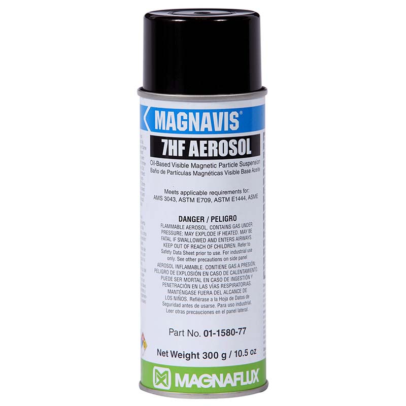 A highly-sensitive oil-based magnetic particle aerosol for nonfluorescent (visible) wet method magnetic particle testing to locate fine and medium discontinuities on finished parts.