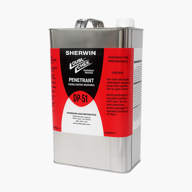 DP-51 is water washable visible penetrant used to locate cracks, laps, pores, lack of bonding, and similar surface flaws. DP-51 can be used on nonporous parts including both ferrous and nonferrous metals, ceramics, and glass and some plastics. Referred to as the “visible dye penetrant“ method or “color contrast” method of inspection and can be used for weld inspection.