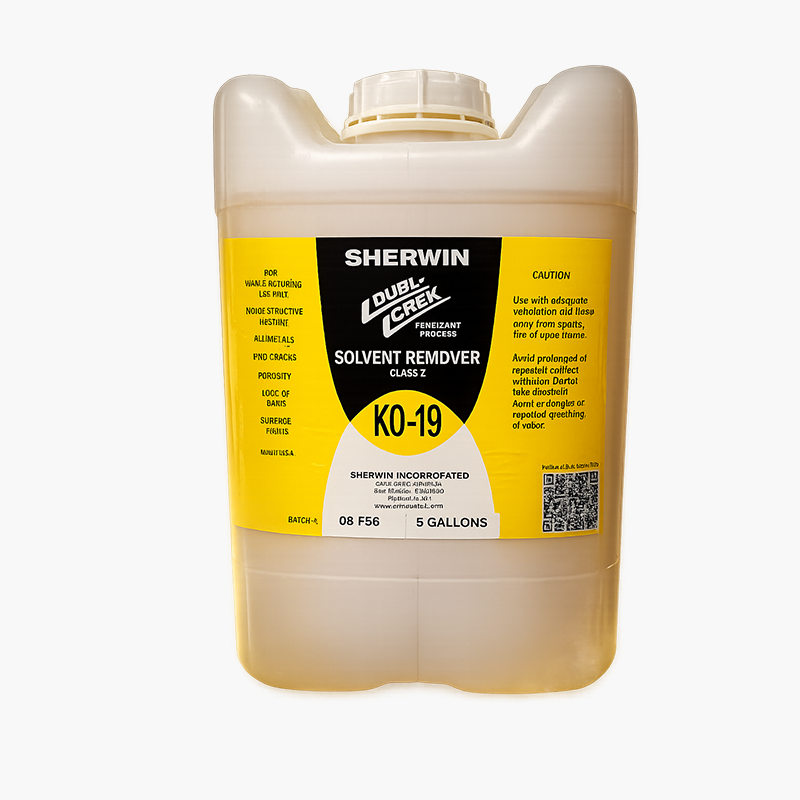 KO-19 hi-temp remover used to remove excess penetrant from the surface of a part at elevated temperatures; up to 3500F (176.70C). KO-19 is the remover step of a three part system used to remove excess penetrant from part surfaces (KO-17 hi-temp penetrant and D-350 hi-temp developer) are the other materials of the hi-temp system. KO-19 complies with low sulfur and low halogen requirements.